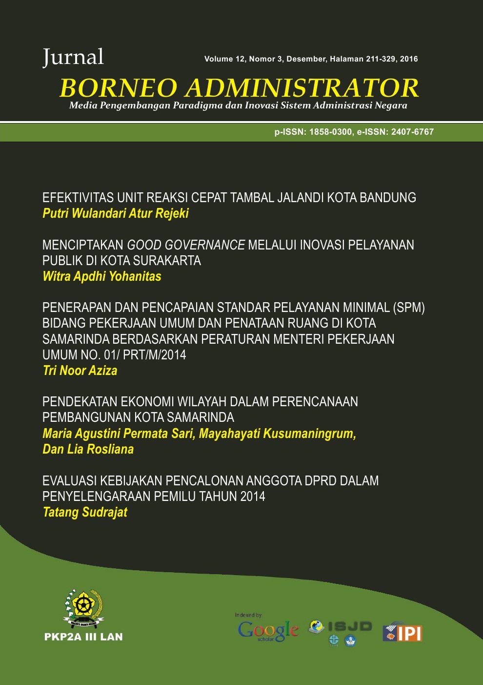 Minimum Service Standard (SPM) in public work and spatial planning sectors is a provision on the type and quality of basic services in the fields of public work and spatial planning. The service fields are obligatory mandates that must be delivered to citizens. This resesarch aims to examine the extent of implementation of SPM and its achievement towards national target in those fields. Moreover, it will find out the pitfalls that undermine the local government agencies to fulfill the citizens’ right. This research applies descriptive analysis and qualitative approach. The results are that 16 indicators from 10 kinds of basic services in the fields performed by three local government units, namely the Department of Human Settlements and Urban Planning, Department of Highways and the Department of Hygiene. However, only 5 of 16 indicators meet the national targets. This poor achievement is caused by various constraints such as: substance, technical, administration, resources, and social problems.
